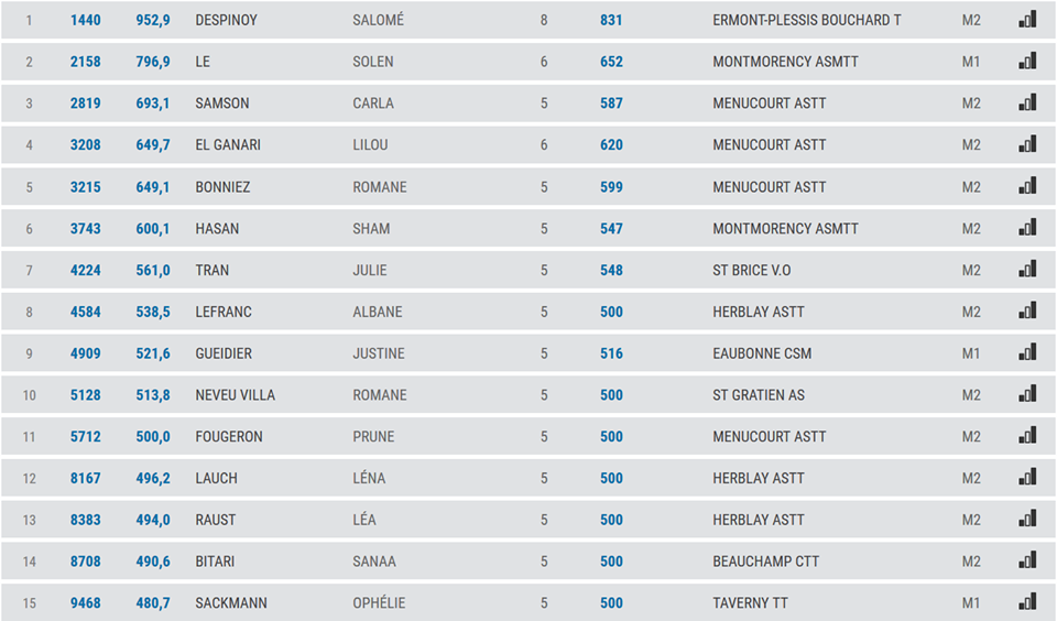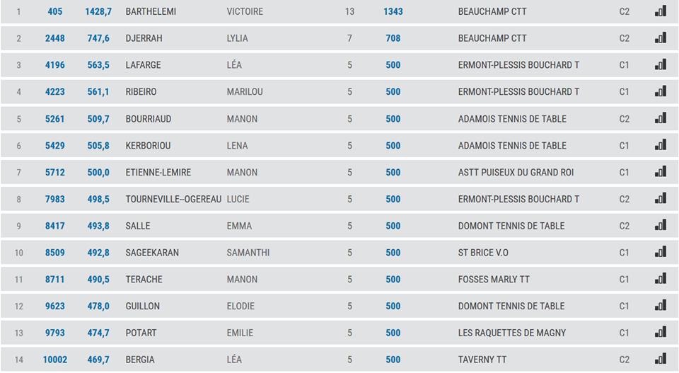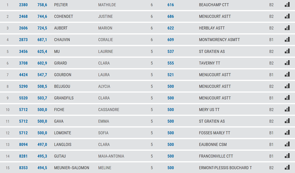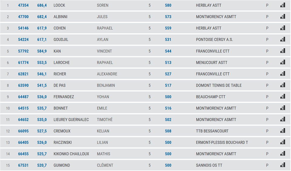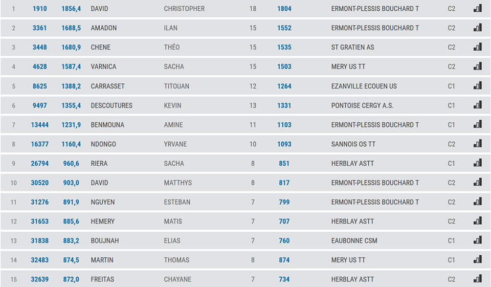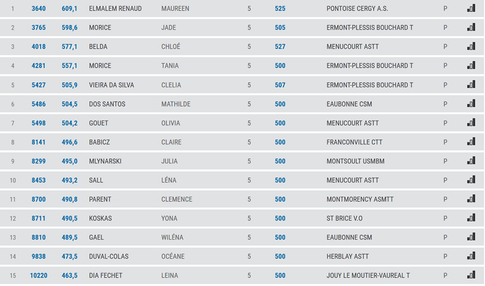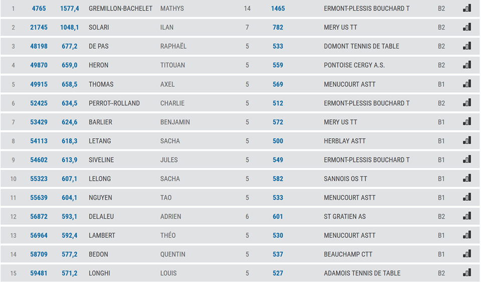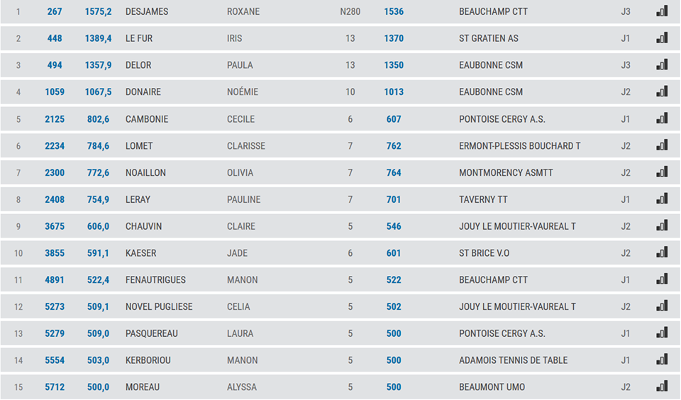 la liste des 15 meilleurs jeunes joueurs dans le départements pour chaque catégories!